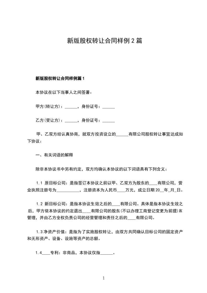 1.3净资产价值:是指为了实施股权转让,由双方共同确认目标公司的固定资产和无形资产、设备、设施等资产的总额。