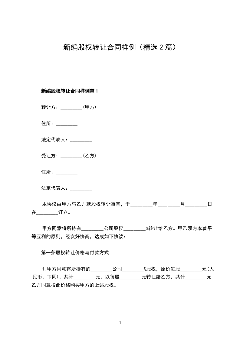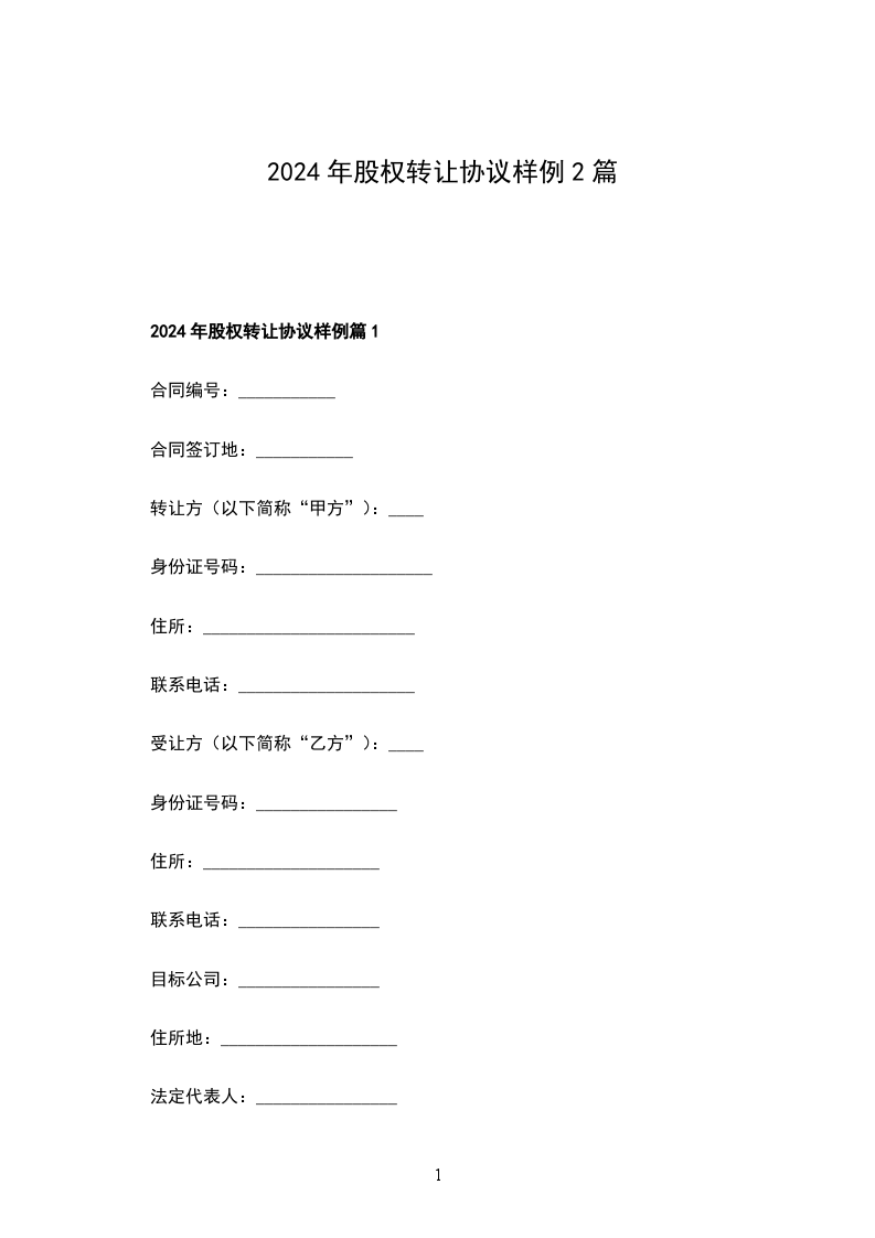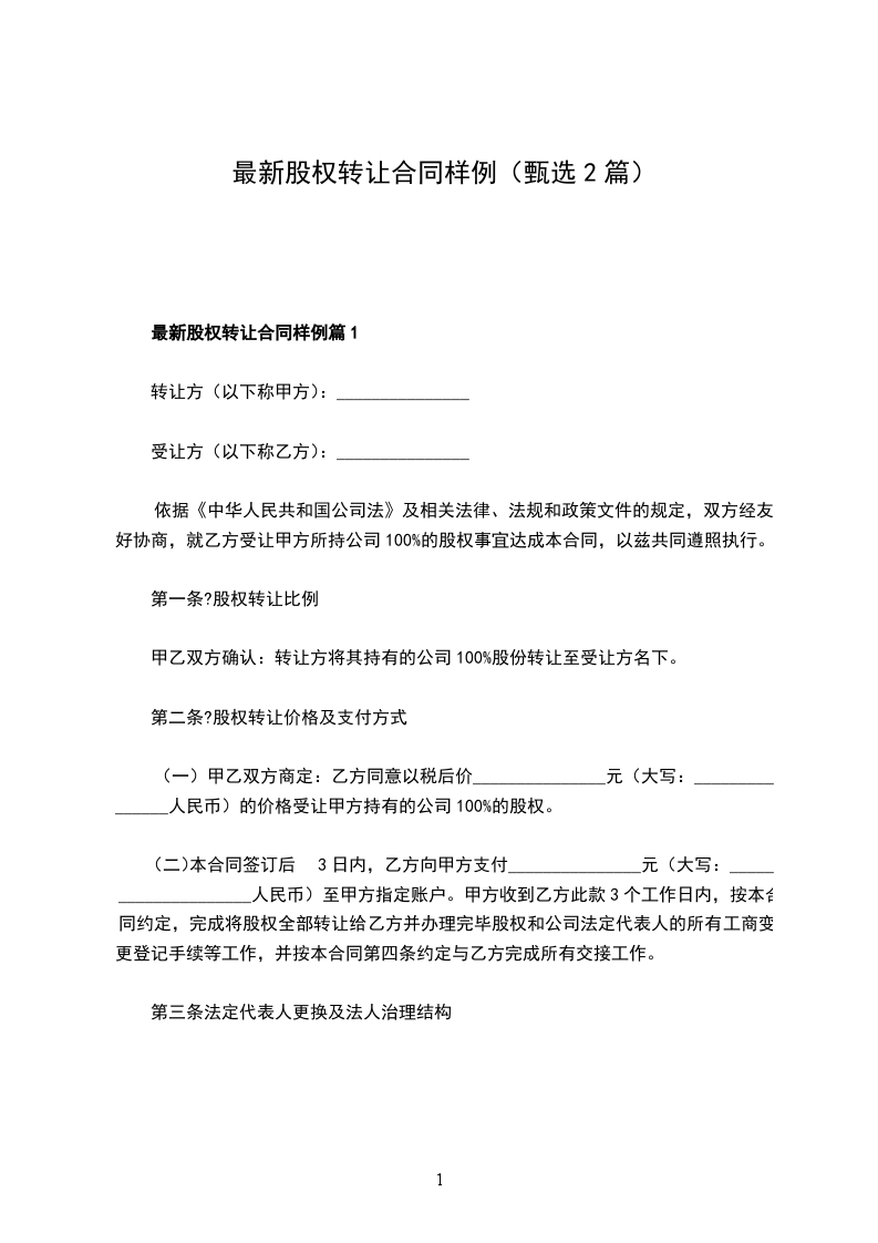1、甲方将其持有该公司_____%的股权转让给乙方;
