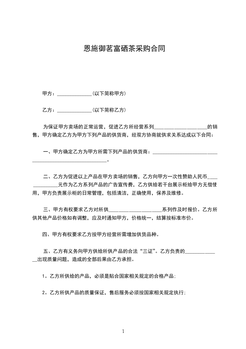恩施硒红茶采购合同
