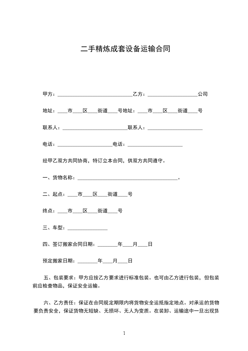 第六条:由乙方送货至_____________________市内甲方指定地点,运费由负责;由甲方负责卸车并承担相应费用。