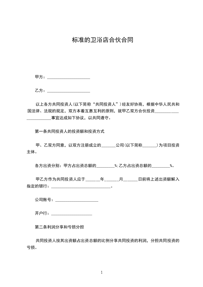 以上各方共同投资人(以下简称“共同投资人”)经友好协商,根据中华人民共和国法律、法规的规定,双方本着互惠互利的原则,就甲乙双方合伙投资________________________事宜达成如下协议,以共同遵守。