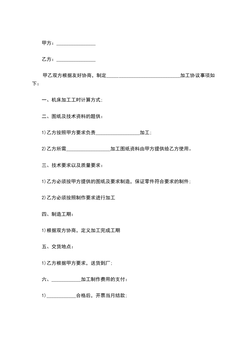 甲方为乙方加工某种机械,经双方友好协商,签订本合同,共同遵守。