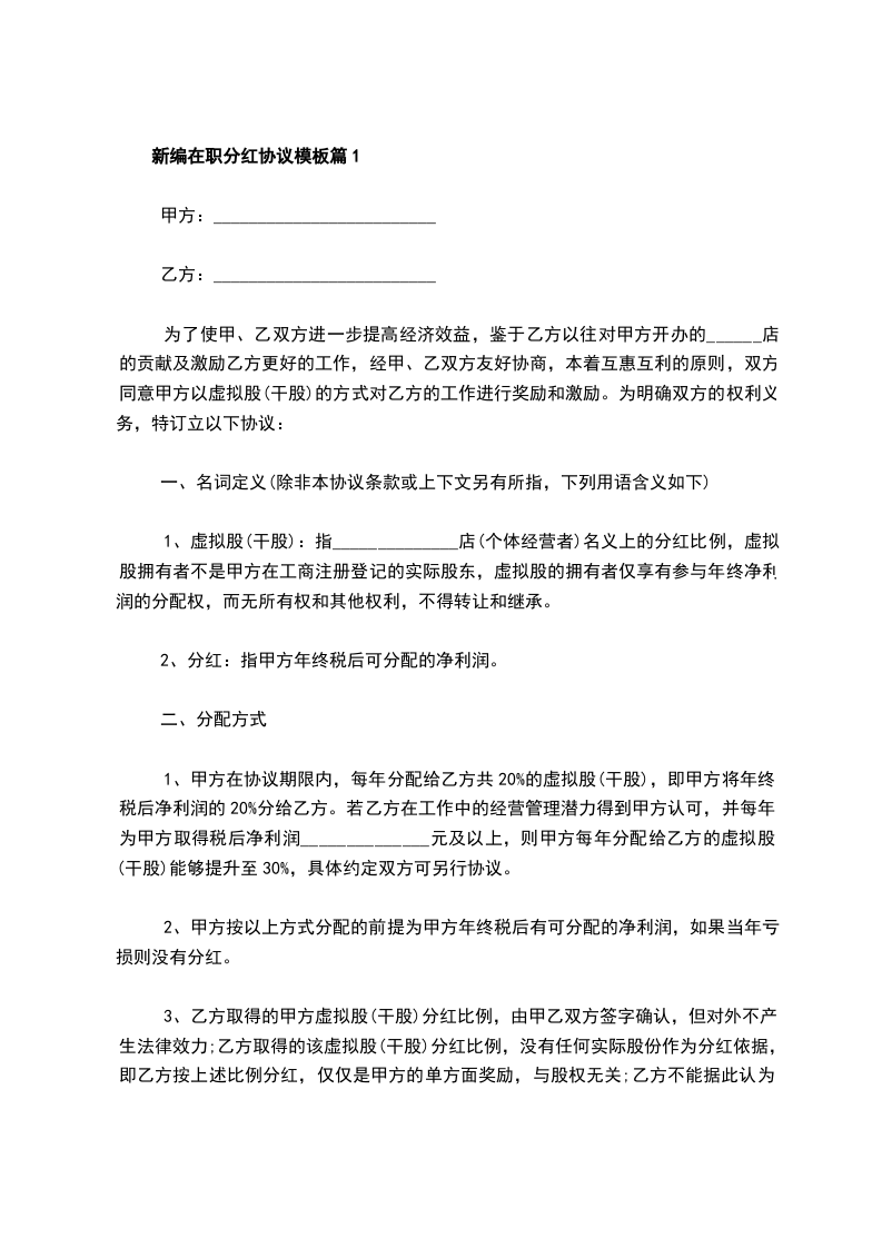 2、协议到期终止后,甲方根据协议期限内的经营状况决定是否签署新的虚拟股(干股)分红协议。