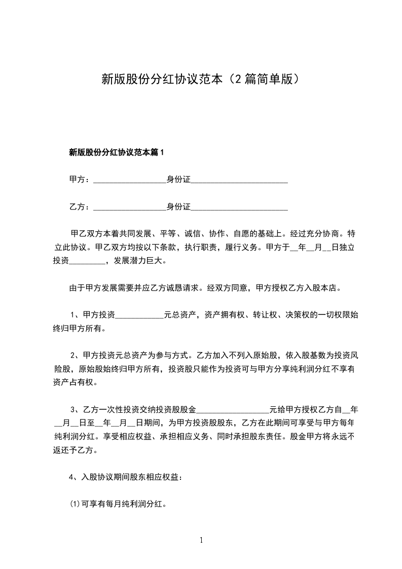 2、乙方所得红利比例为___%(以___税后可分配利润___为基准),通过___方式支付,并视公司的发展以书面形式每______年调整一次;