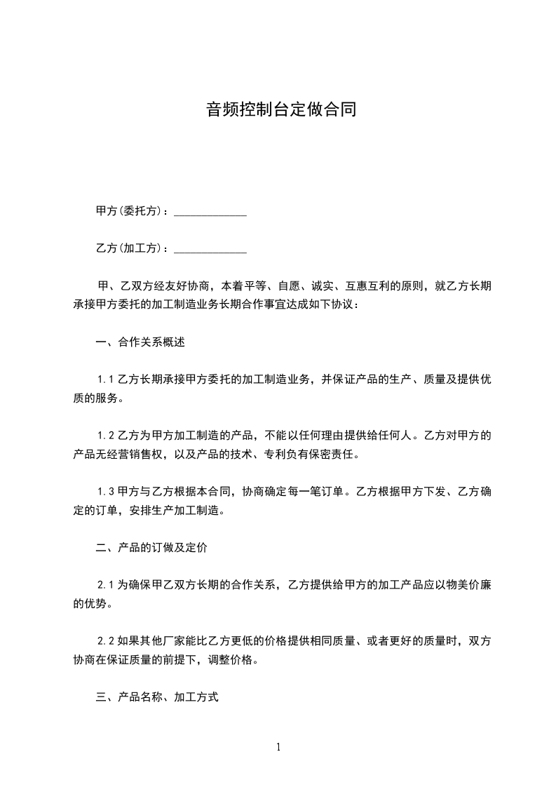 1.1乙方长期承接甲方委托的加工制造业务,并保证产品的生产、质量及提供优质的服务。
