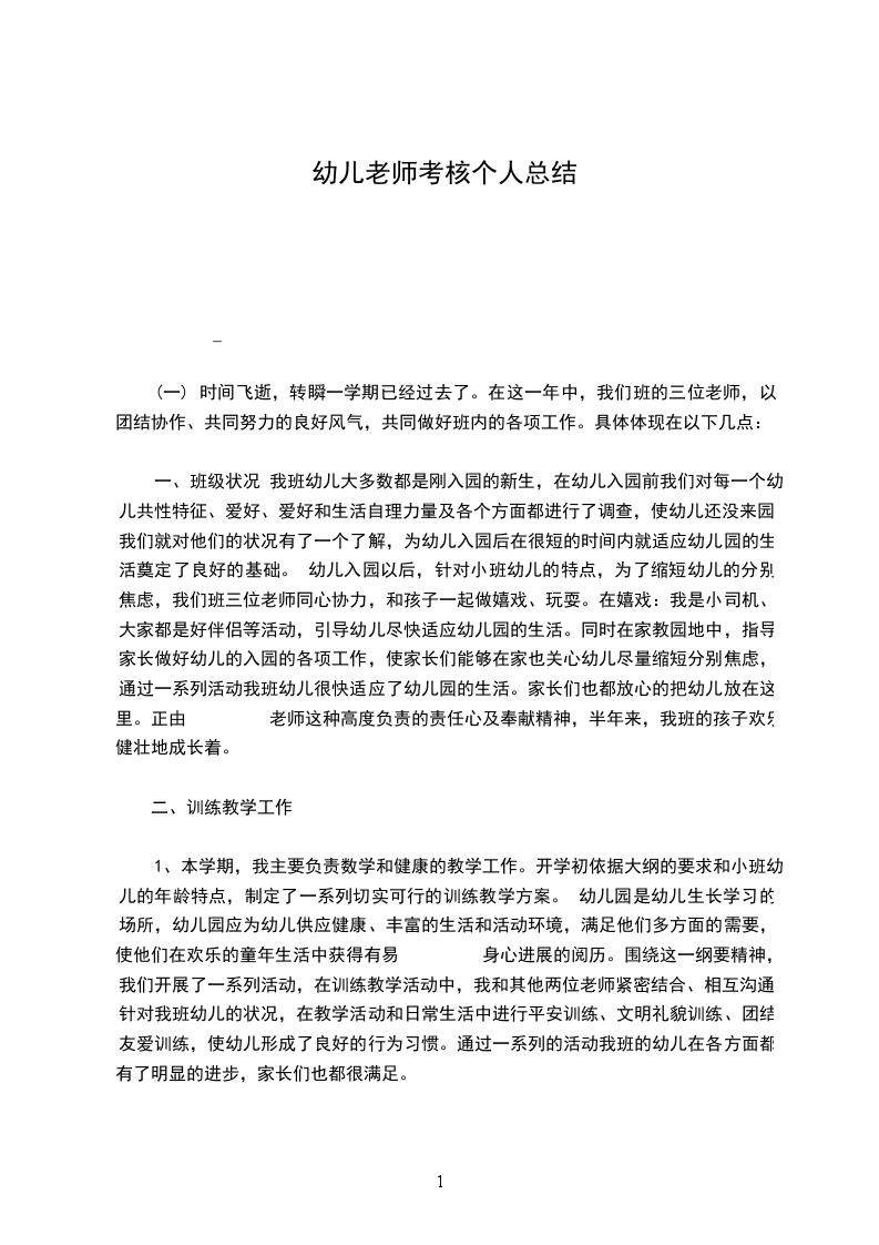 1、本学期,我主要负责数学和健康的教学工作。开学初依据大纲的要求和小班幼儿的年龄特点,制定了一系列切实可行的训练教学方案。 幼儿园是幼儿生长学习的场所,幼儿园应为幼儿供应健康、丰富的生活和活动环境,满足他们多方面的需要,使他们在欢乐的童年生活中获得有易 身心进展的阅历。围绕这一纲要精神,我们开展了一系列活动,在训练教学活动中,我和其他两位老师紧密结合、相互沟通,针对我班幼儿的状况,在教学活动和日常生活中进行平安训练、文明礼貌训练、团结友爱训练,使幼儿形成了良好的行为习惯。通过一系列的活动我班的幼儿在各方面都有了明显的进步,家长们也都很满足。