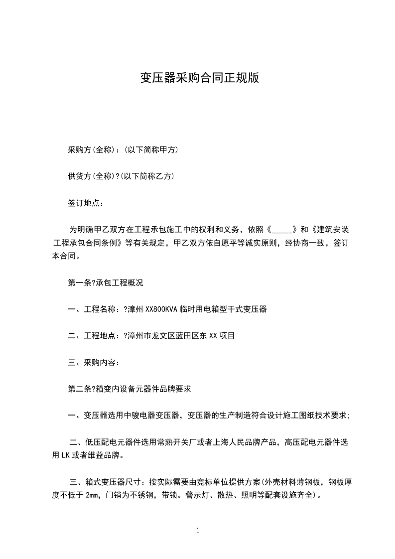 一、工程名称:?漳州XX800KVA临时用电箱型干式变压器