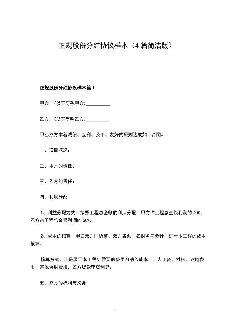 正规股份分红协议样本篇1