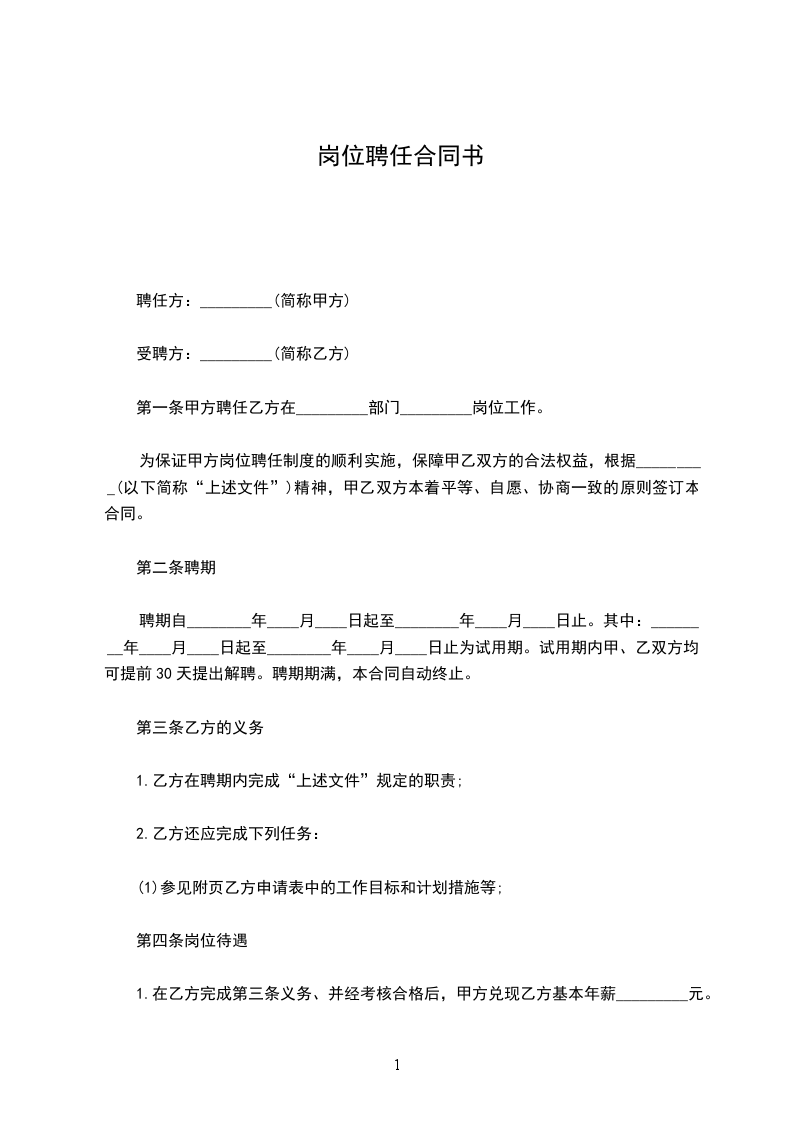 第一条甲方聘任乙方在_________部门_________岗位工作。
