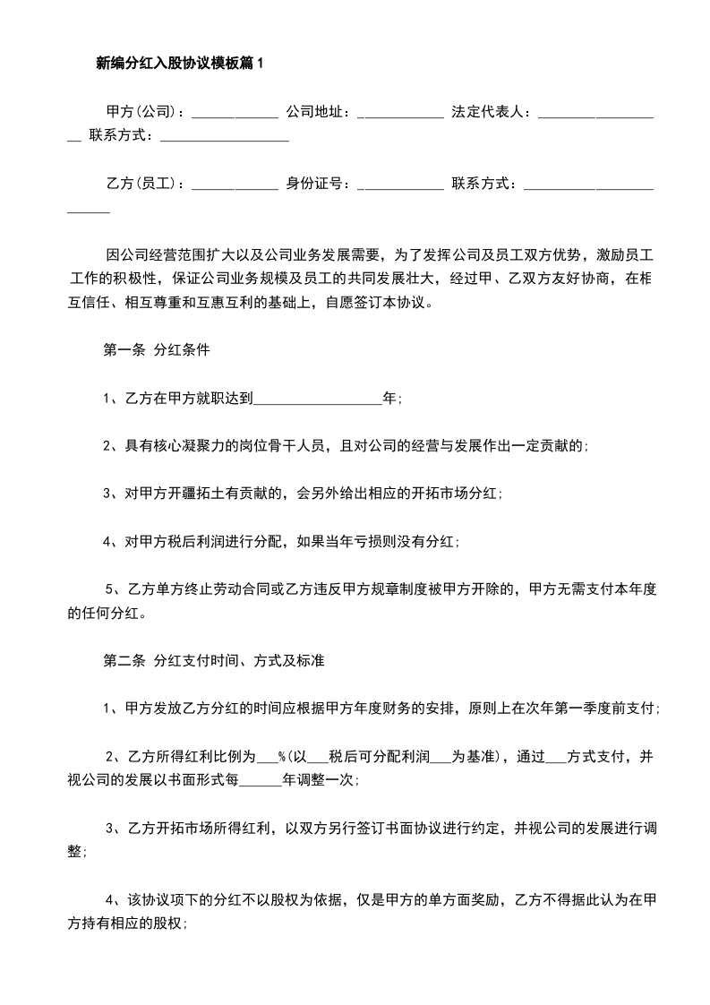 新编入股分红协议怎么写篇1
