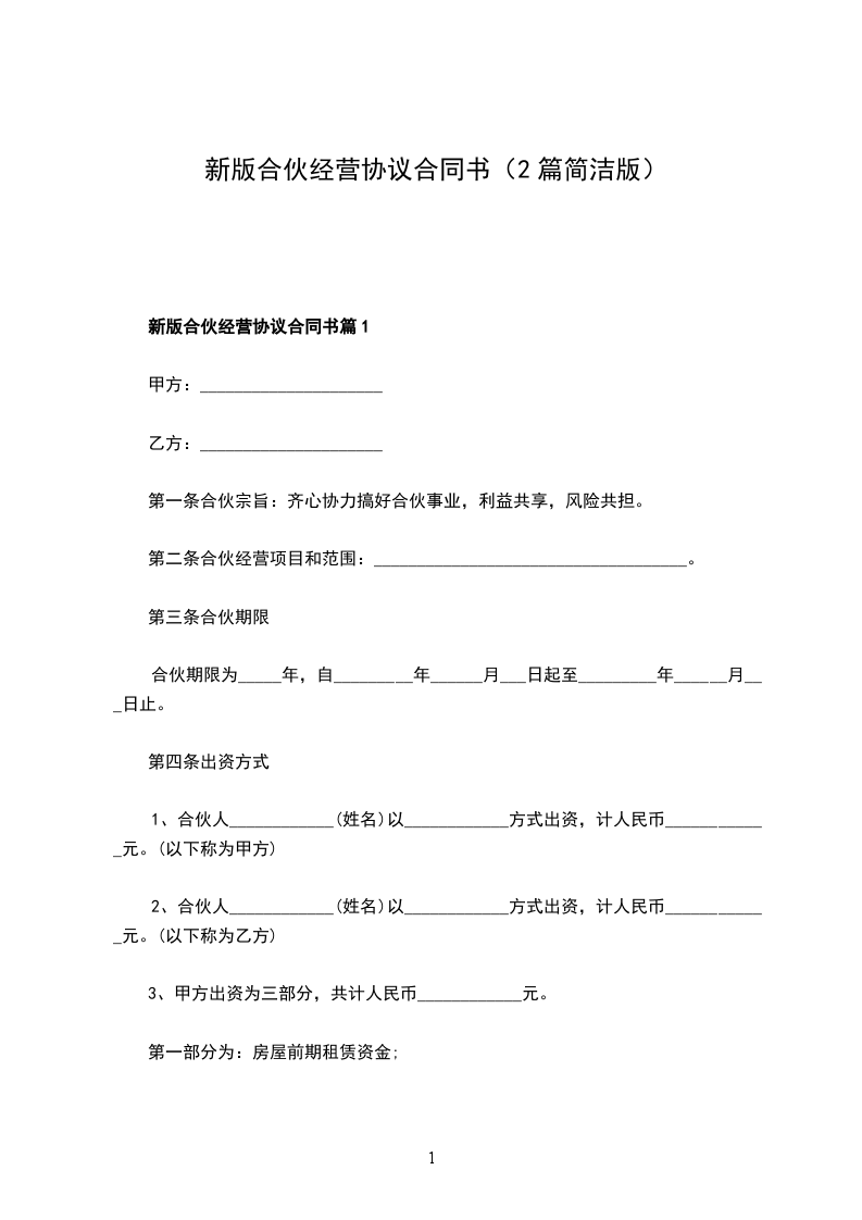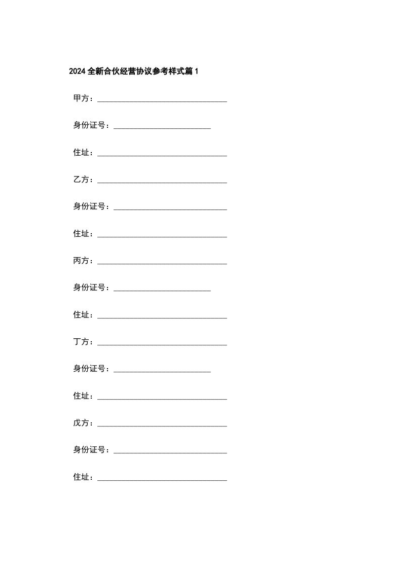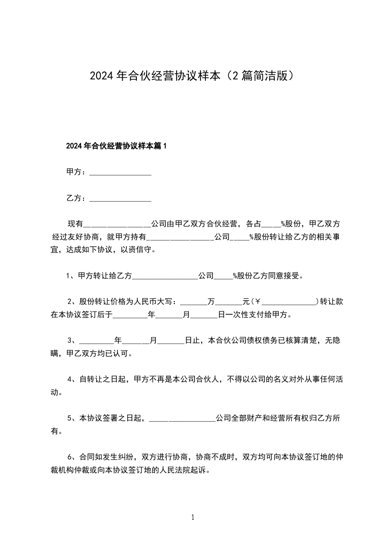2024年合伙经营协议模板篇1