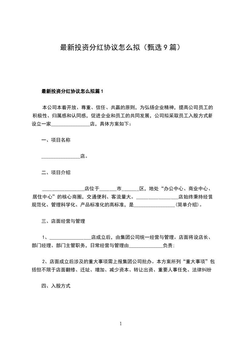 最新分红协议范本篇2
