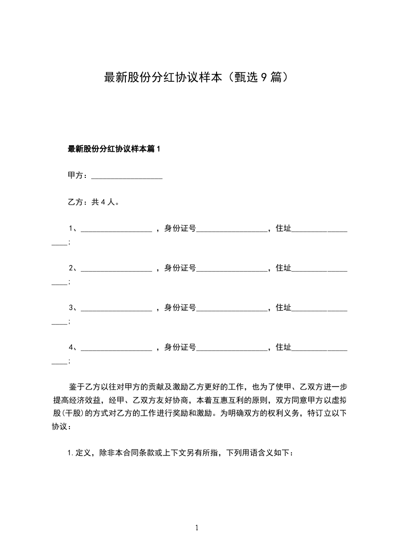 最新分红协议范本篇9