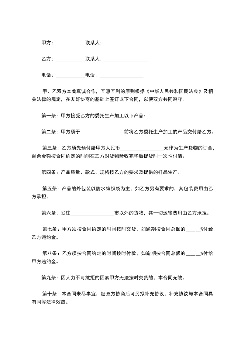 甲乙双方根据友好协商,制定______________________________加工协议事项如下: