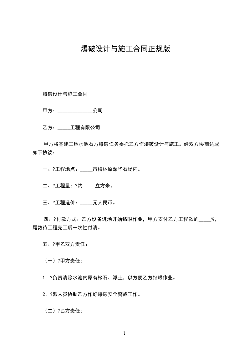 1.?乙方按甲方要求完成爆破施工。