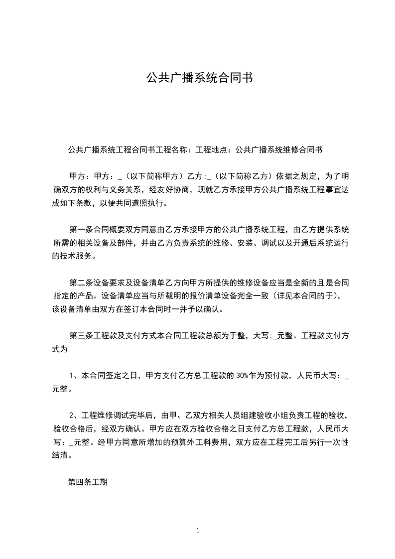 4)全套设备安装调试完毕,经验收合格后15日内,乙方提供全额发票后,甲方向乙方支付合同总价款的________%即_______¥(大写:_______)。