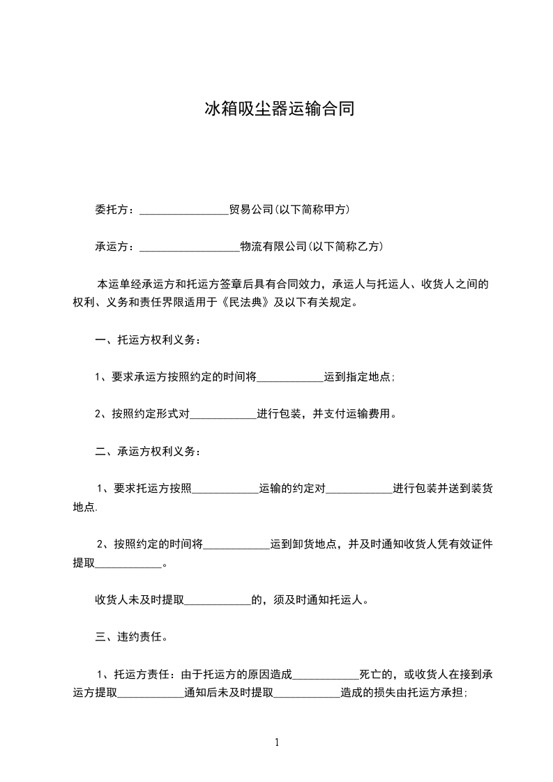 1、要求承运方按照约定的时间将____________运到指定地点;