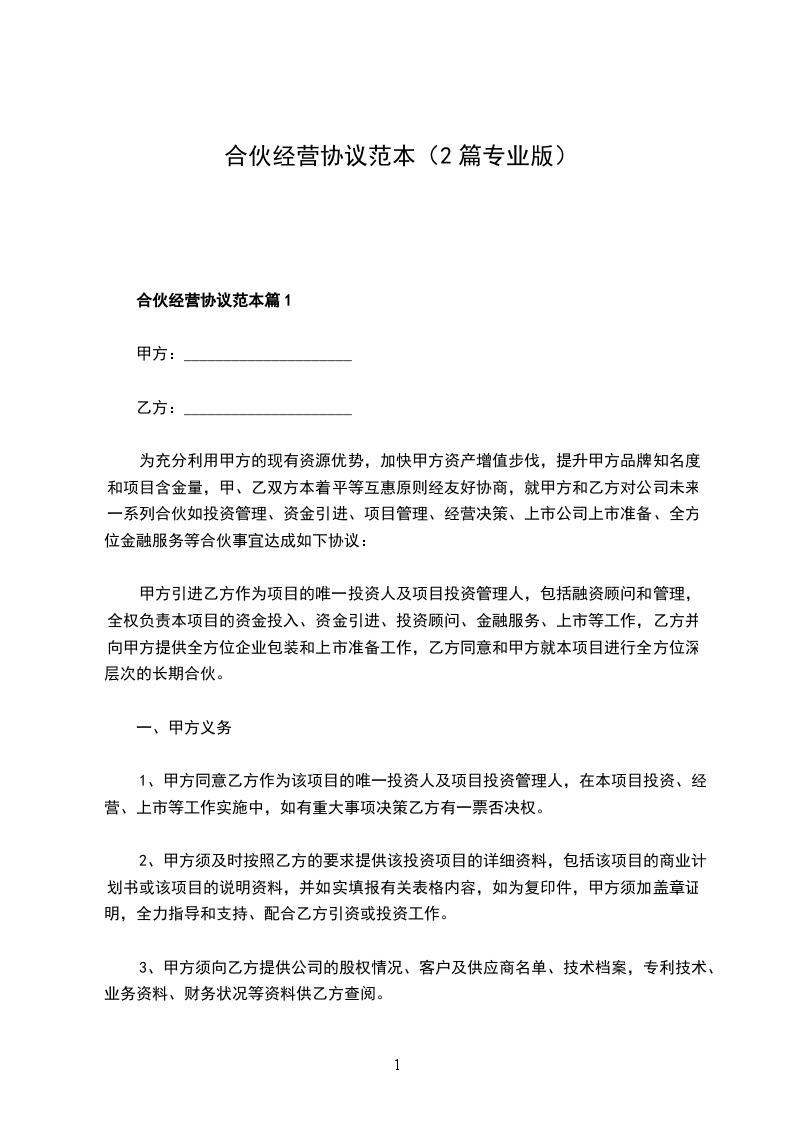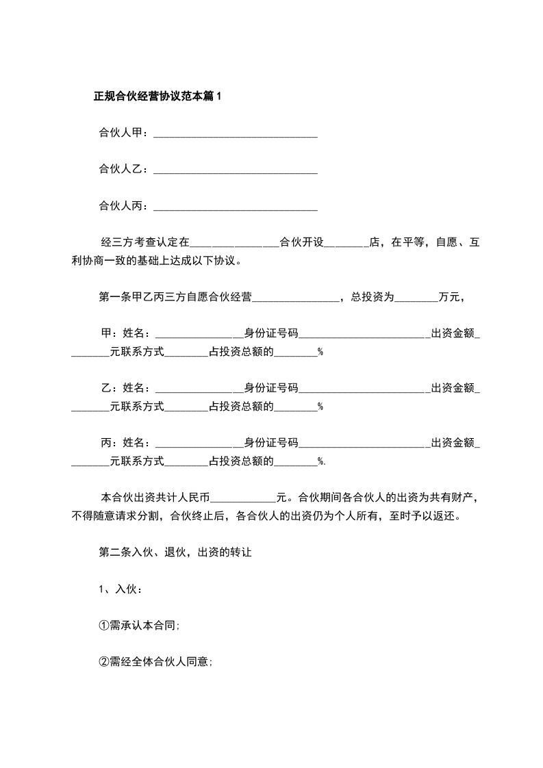 2、本协议一式两份,合伙人各执一份。