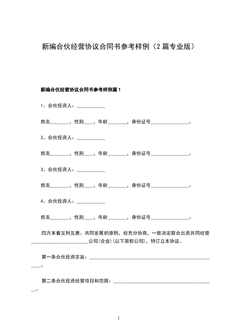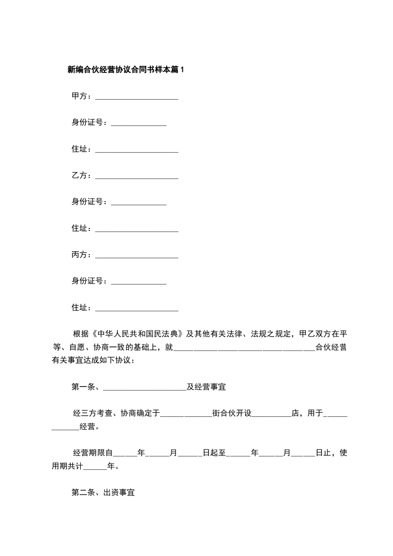 新编合伙经营协议合同书样本篇1