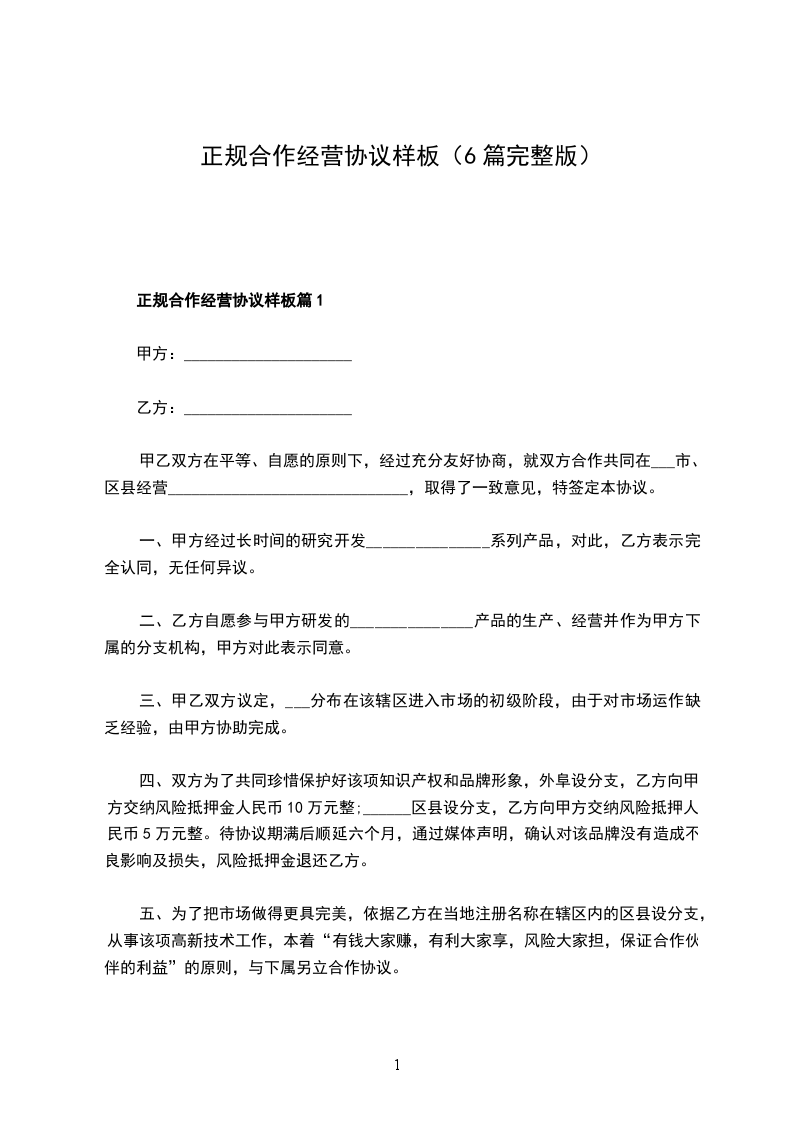 正规合作经营协议样本篇1