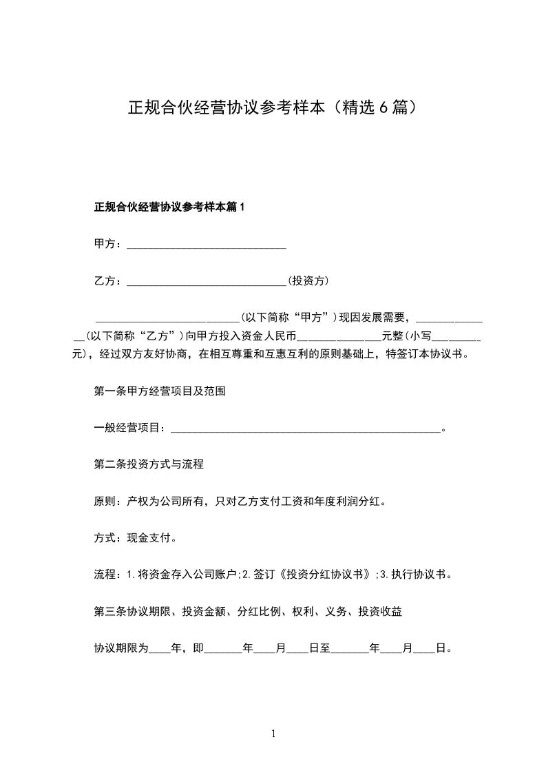 1、本协议签订前,甲方已经投资人民币____________元。