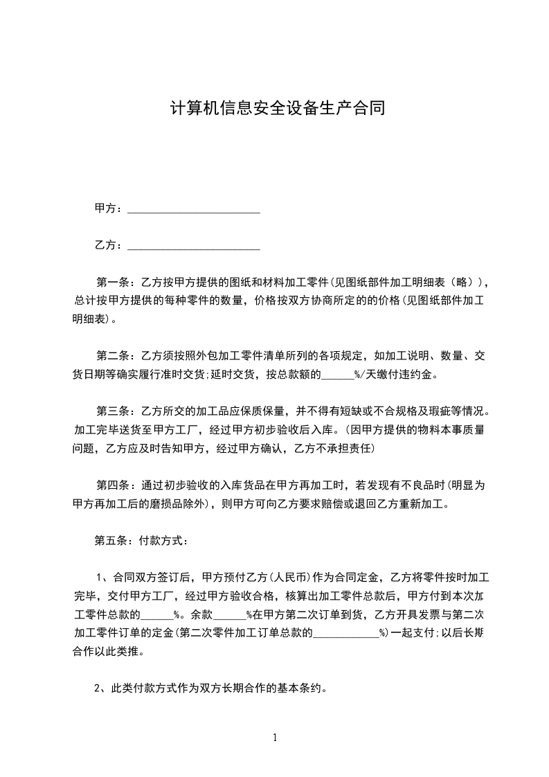 第一条:乙方按甲方提供的图纸和材料加工零件(见图纸部件加工明细表(略)),总计按甲方提供的每种零件的数量,价格按双方协商所定的的价格(见图纸部件加工明细表)。