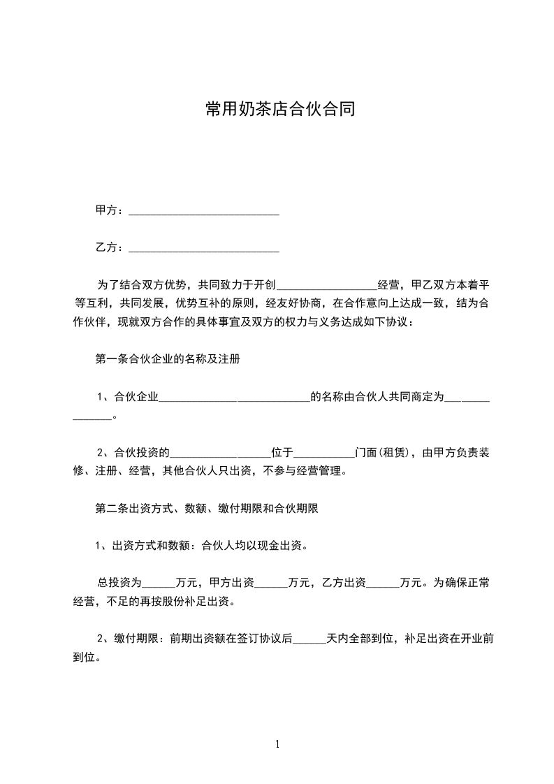 合伙人(甲方):________________________合伙人(乙方):________________________