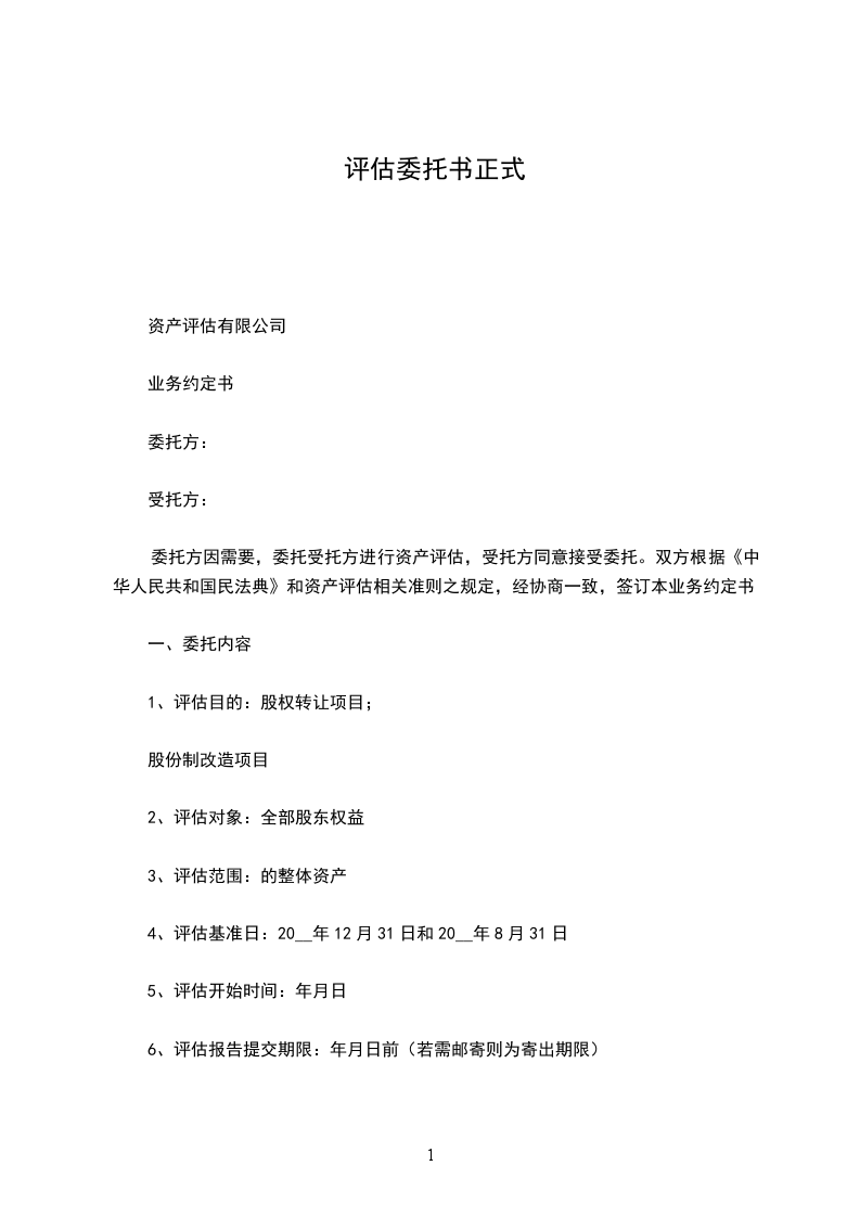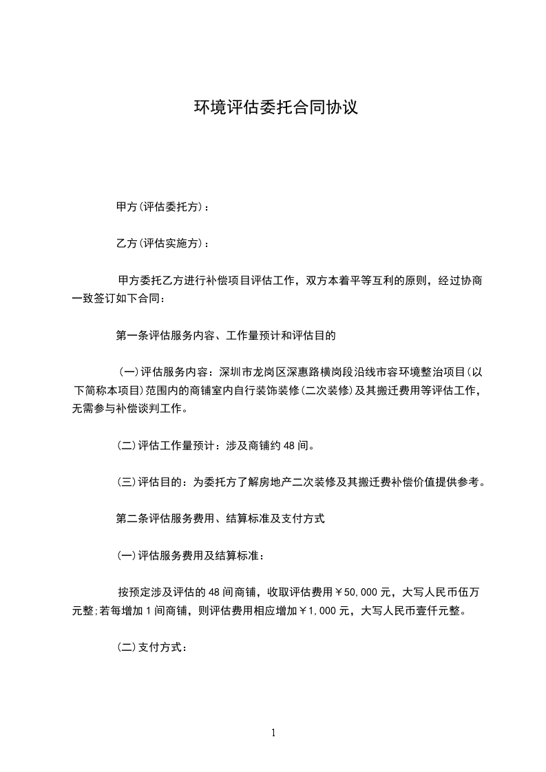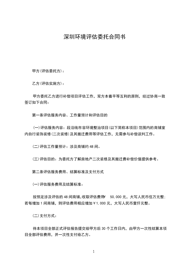 第一条评估服务内容、工作量预计和评估目的