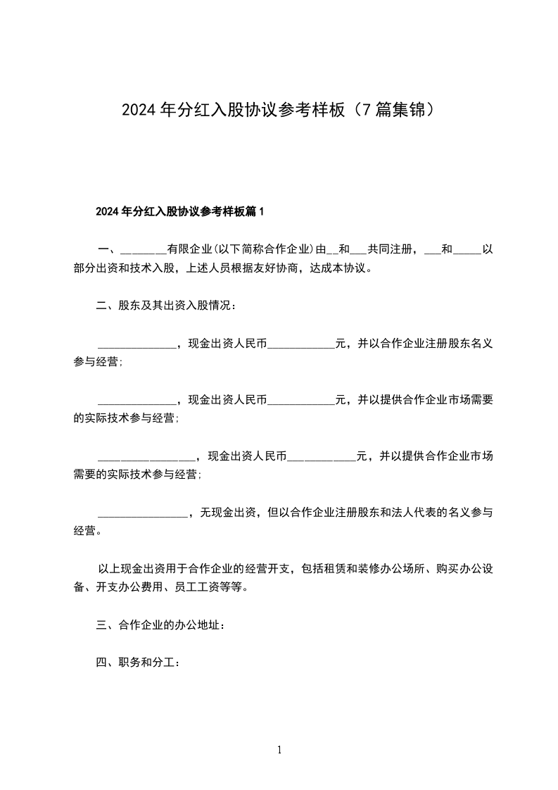 二、分红协议期限 从____________起到__________________止。分红的依据及计算办法