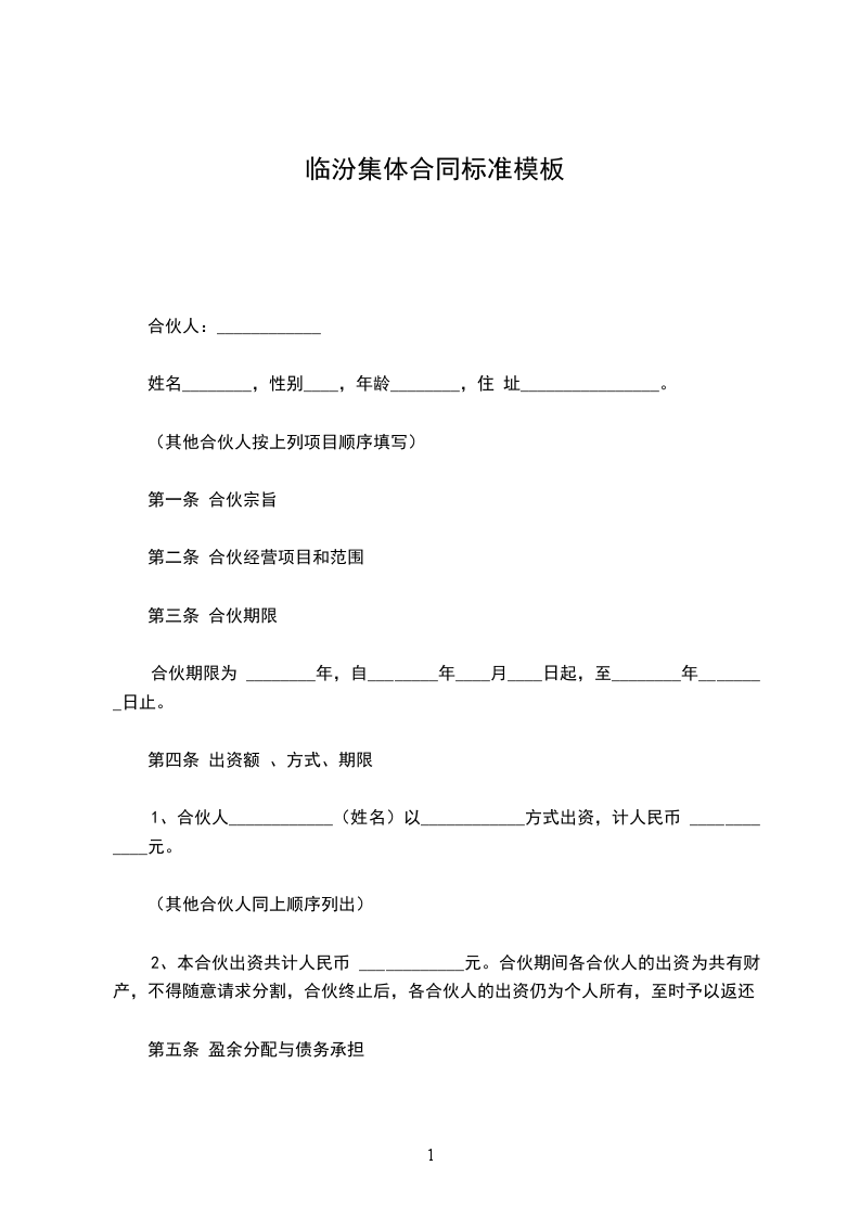 2、本合伙出资共计人民币 ____________元。合伙期间各合伙人的出资为共有财产,不得随意请求分割,合伙终止后,各合伙人的出资仍为个人所有,至时予以返还。