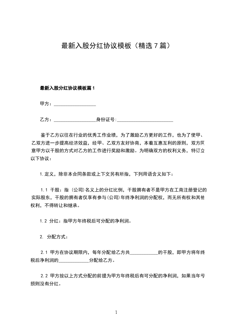 2.1 甲方在协议期限内,每年分配给乙方共____________的干股,即甲方将年终税后净利润的_____________分配给乙方。