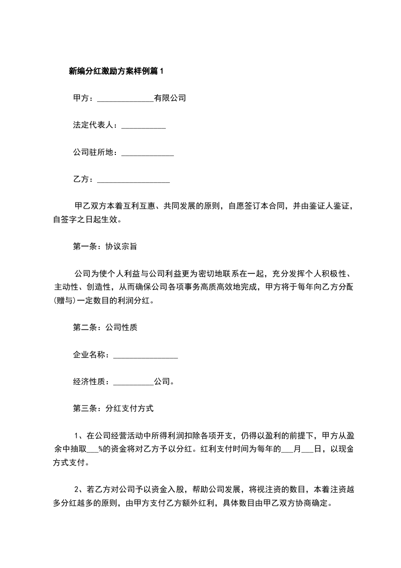 新编分红激励方案样例篇1