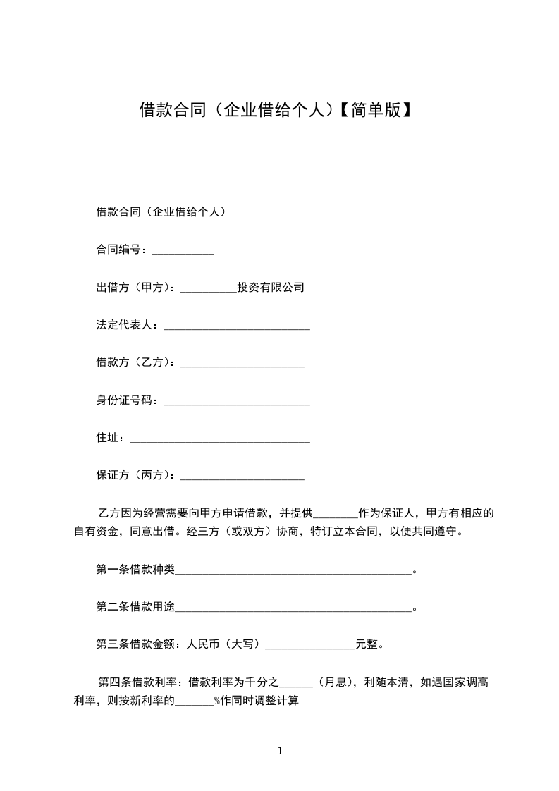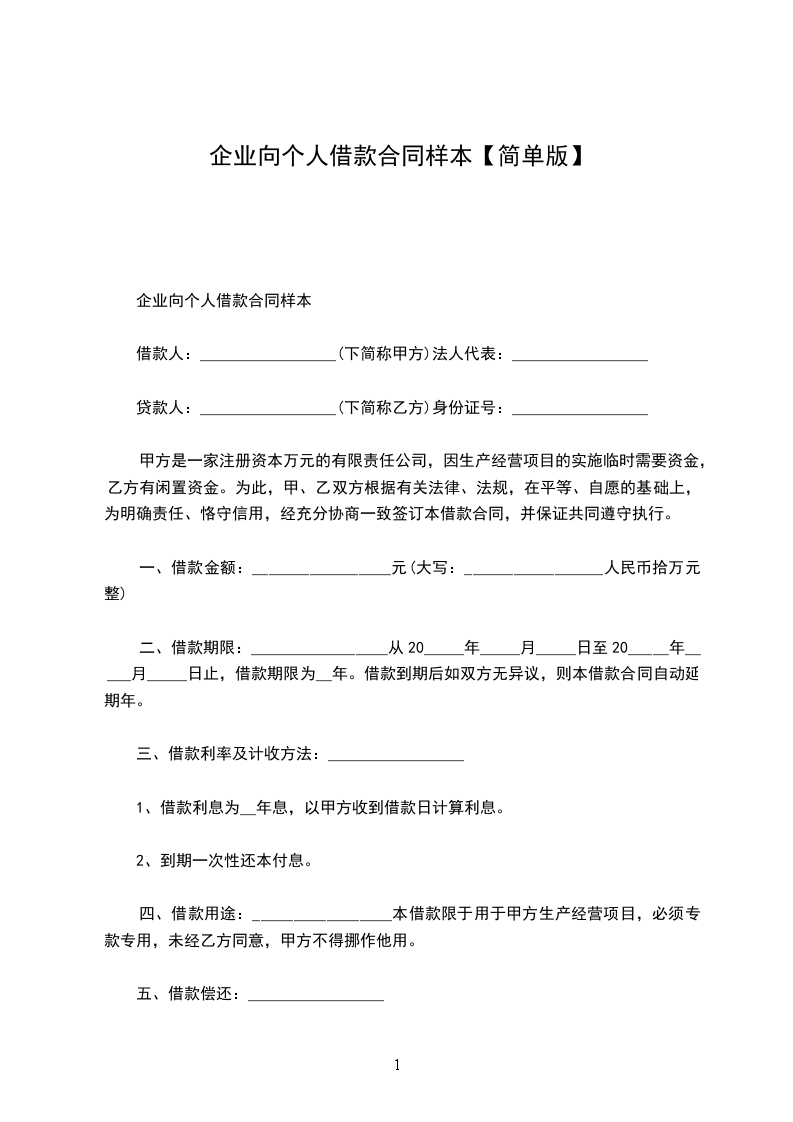 1、甲方应于________年____月____日前一次性提供给乙方合同约定的借款数额。