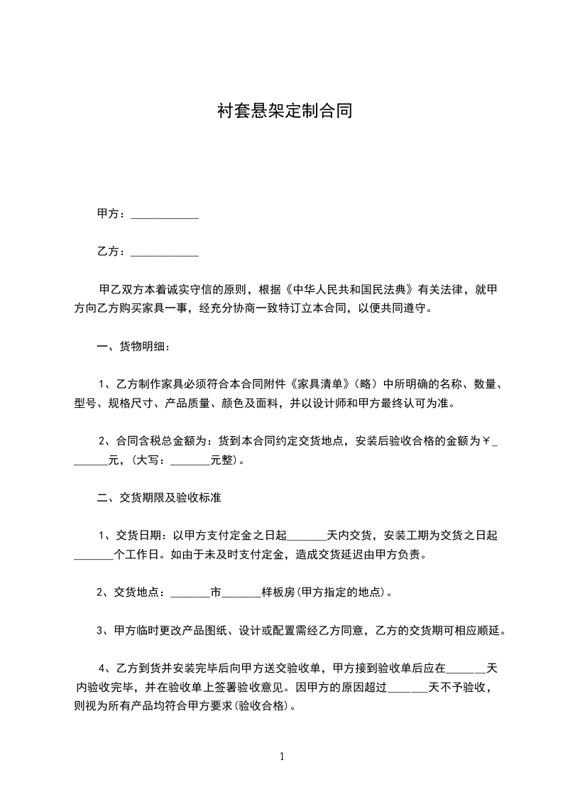 根据《中华人民共和国民法典》及有关法律法规,甲乙双方就__________________________________________的定制家具分包项目合作进行友好协商,一致同意按下列条款签订本合同。