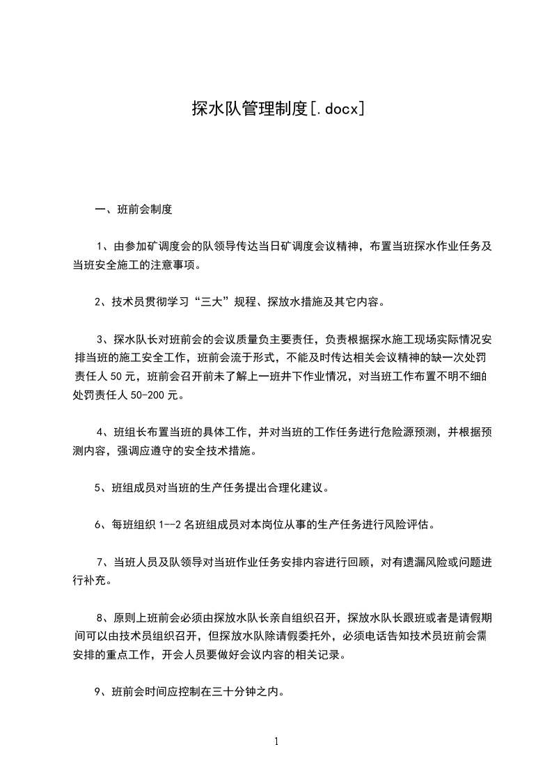 10、物探由我矿防治水中心进行施工。物探结束后,一周内内必须提交物探报告。1