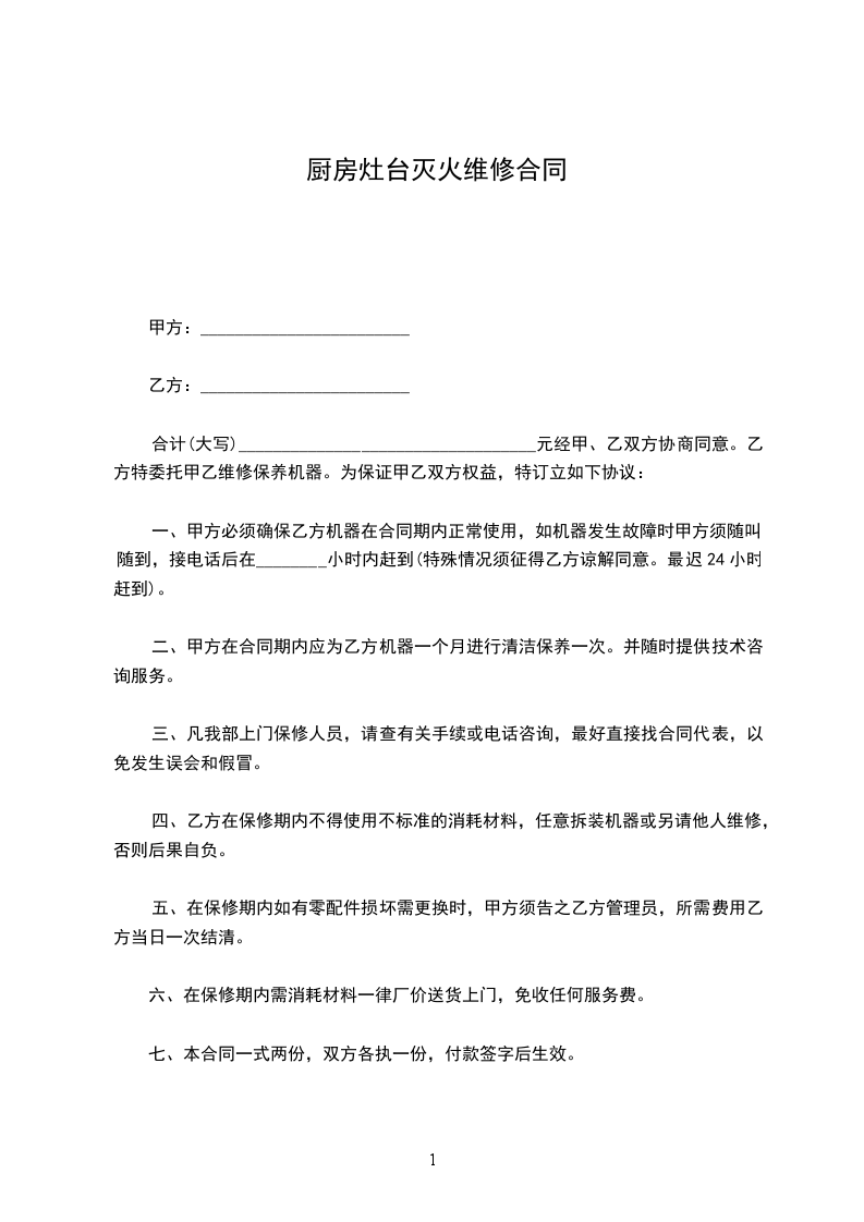 合计(大写)__________________________________元经甲、乙双方协商同意。乙方特委托甲乙维修保养机器。为保证甲乙双方权益,特订立如下协议:
