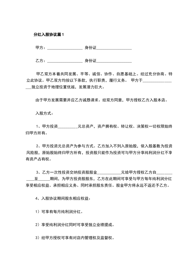 分红入股协议篇1