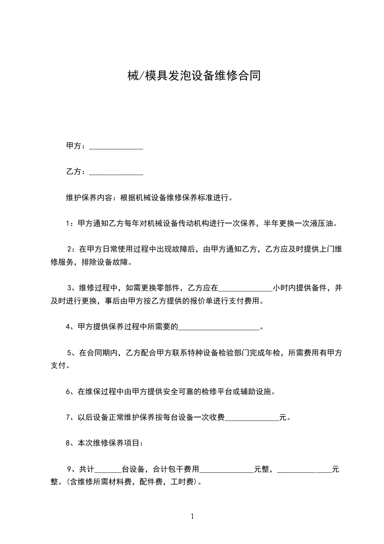 9、共计_______台设备,合计包干费用______________元整,______________元整。(含维修所需材料费,配件费,工时费)。