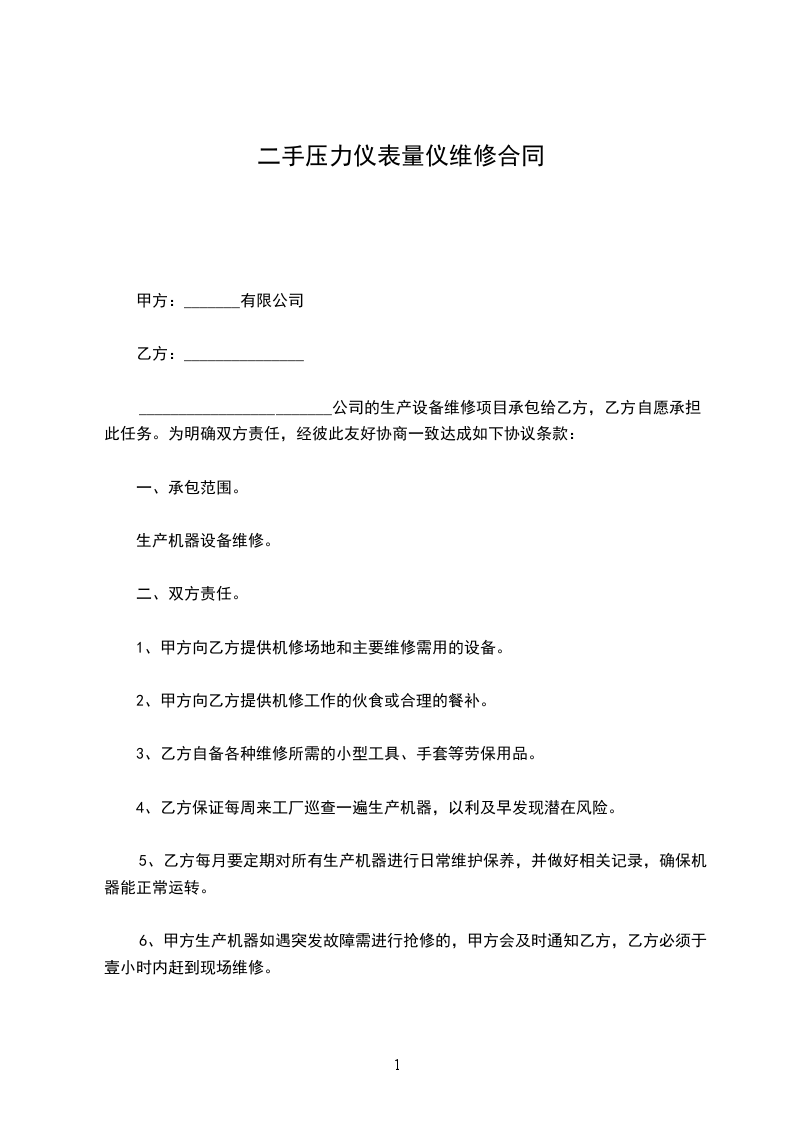 1、乙方承接甲方维修工作,按本合同的约定完成各项内容,经验收合格后交付甲方。