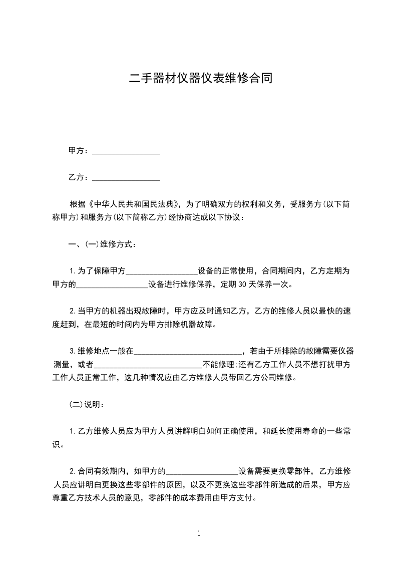 4、交货期:乙方须在本合同生效之日起________日内完成设备的全部维修内容,并调试合格交付甲方使用。