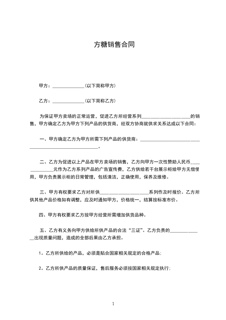 二、乙方为促进以上产品在甲方卖场的销售,乙方向甲方一次性赞助人民币______________元作为乙方系列产品的广告宣传费,乙方供给若干台展示柜给甲方无偿使用,甲方负责展示柜的日常管理,包括清洁,正确使用,保养及维修。
