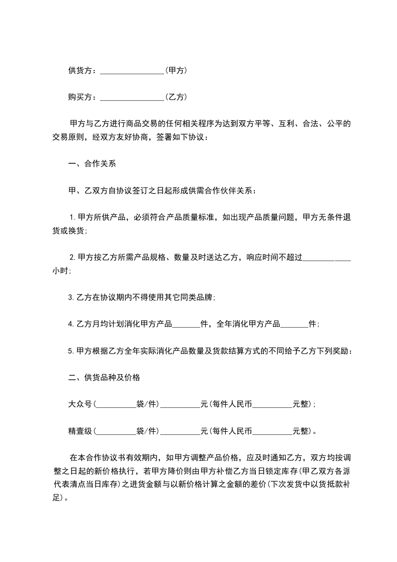 甲乙双方根据《中华人民共和国民法典》的有关规定,建立长期互惠供求关系,经友好协商,特就__________________事项达成如下协议: