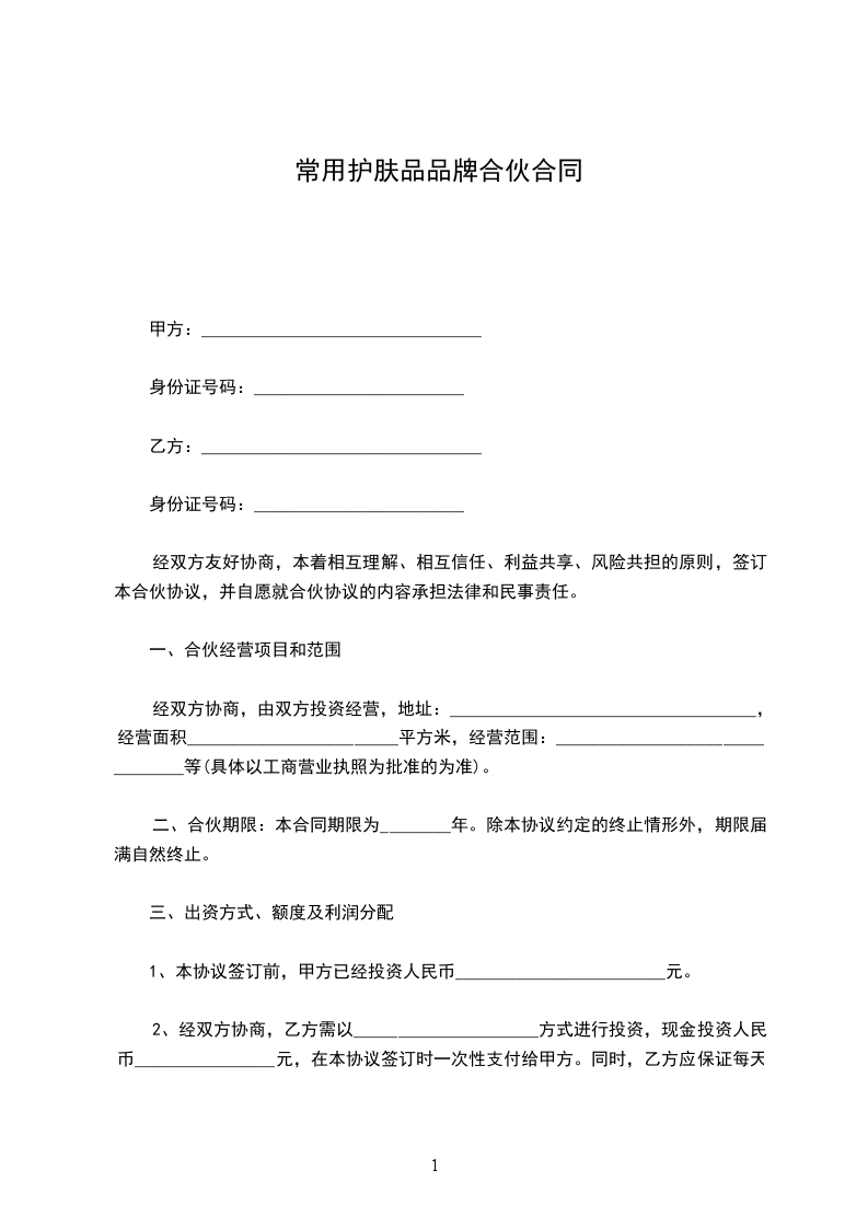 根据《中华人民共和国民法典》及其他有关法律、法规之规定,甲乙双方在平等、自愿、协商一致的基础上,就___________________________________合伙经营有关事宜达成如下协议: