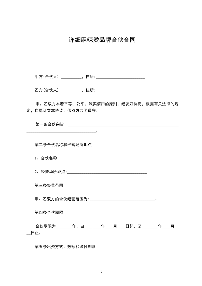 以上各方共同投资人(以下简称“共同投资人”)经友好协商,根据中华人民共和国法律、法规的规定,双方本着互惠互利的原则,就甲乙双方合伙投资________________________事宜达成如下协议,以共同遵守。