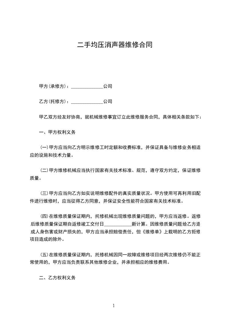 甲乙双方经友好协商,就机械维修事宜订立此维修服务合同,具体相关条款如下: