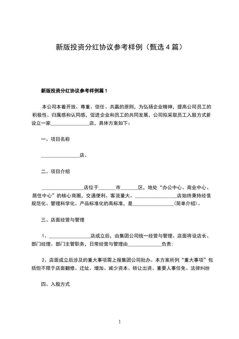 新版投资分红协议参考样例篇1