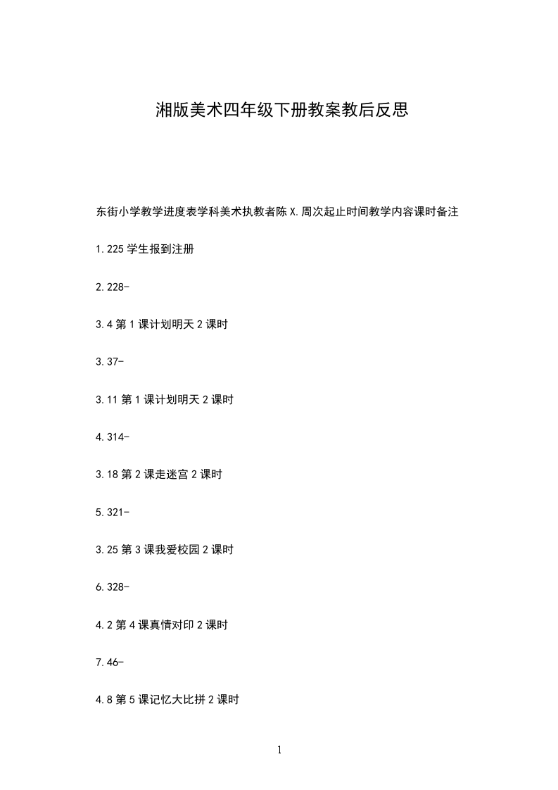 东街小学教学进度表学科美术执教者陈X.周次起止时间教学内容课时备注