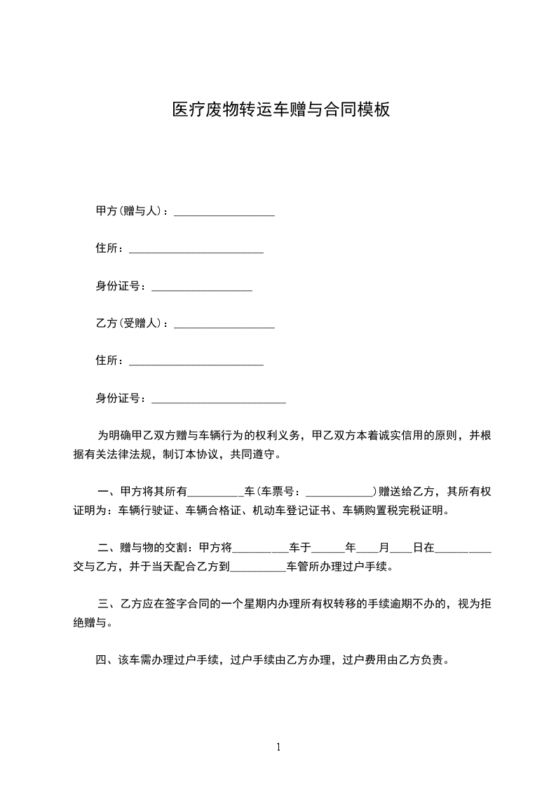 一、甲方将其所有的汽车赠送给乙方,其所有权证明为:___________________________________。