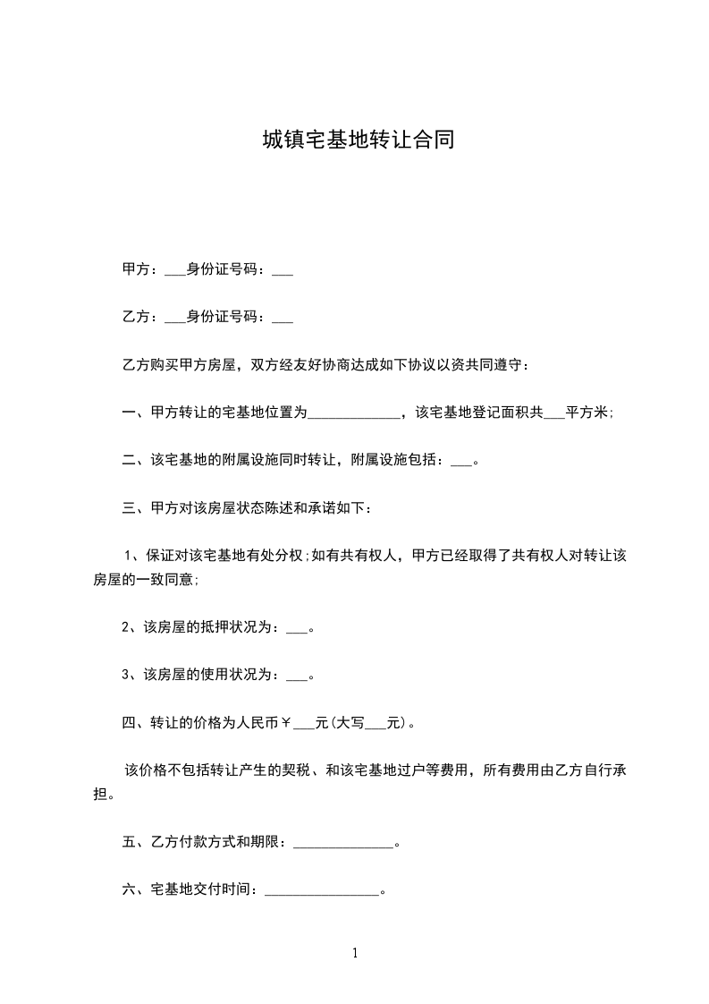 一、甲方转让的宅基地位置为_____________,该宅基地登记面积共___平方米;