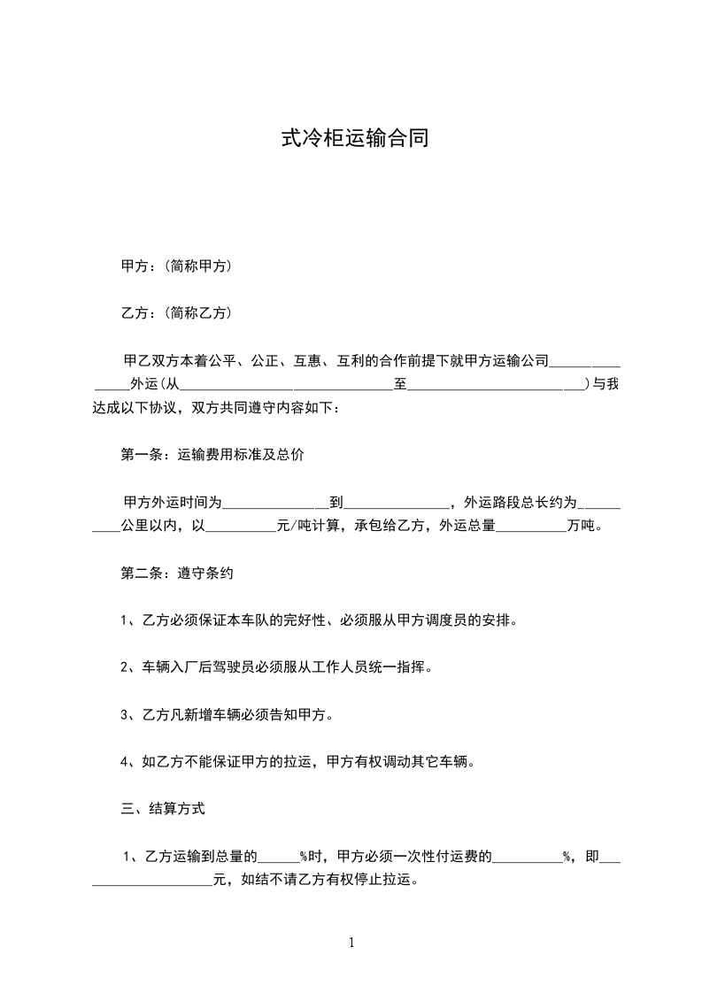 一、甲方委托乙方为__________________至_________________区内的货物特约承运单位。